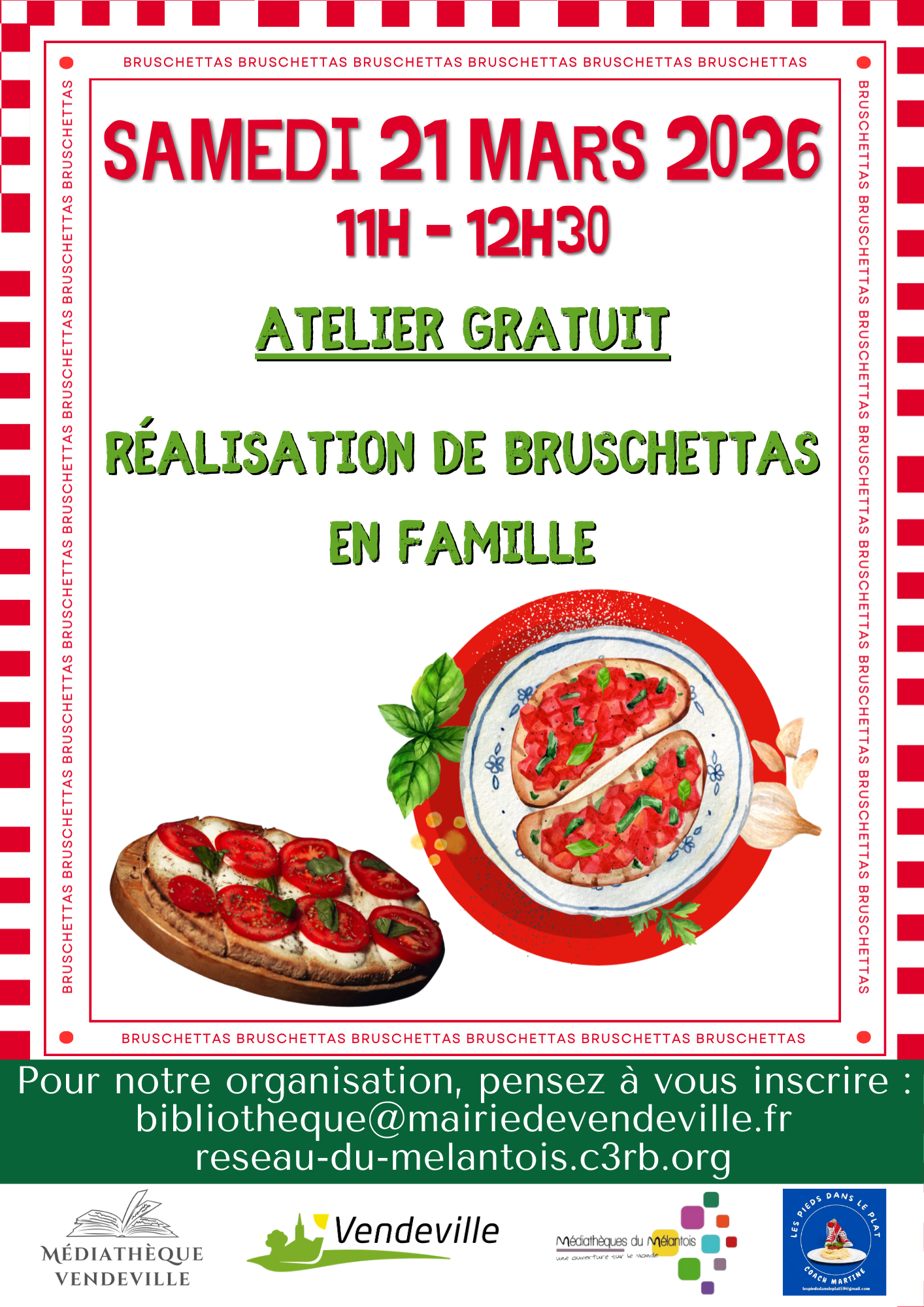 Venez partager un moment ludique et savoureux en apprenant Ă Â prĂ©parer de dĂ©licieuses bruschettas. Cet atelier gratuit est lâoccasion parfaite de cuisiner ensemble, dĂ©couvrir des saveurs simples et passer un bon moment en famille.