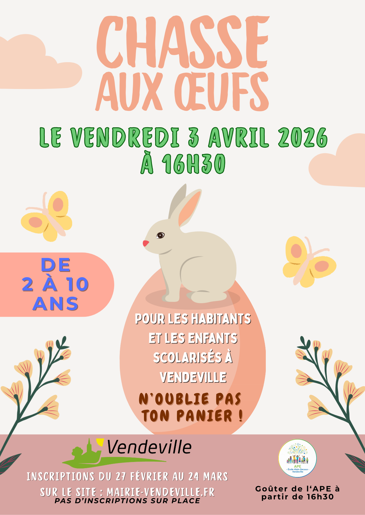 Tu es Vendevillois ou scolarisé à Vendeville ? Tu as entre 2 et 10 ans ? Viens participer et surtout, n'oublie pas ton panier !