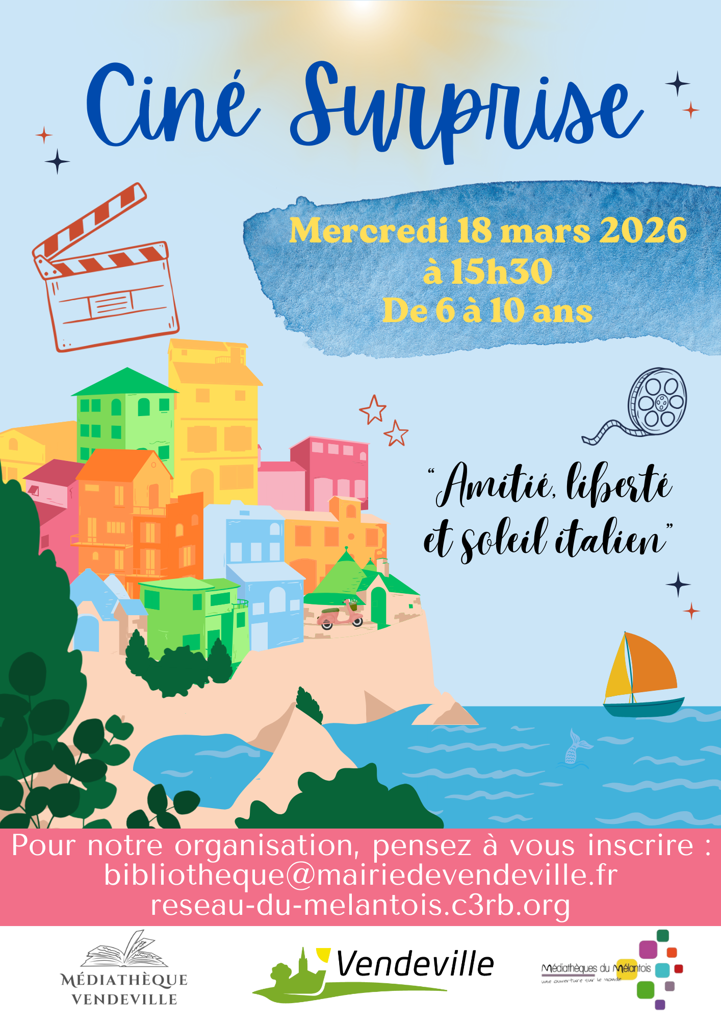 Dans le cadre du Mois de l’Italie, la médiathèque de Vendeville propose un ciné surprise spécialement pensé pour les enfants. Installez-vous confortablement et laissez-vous surprendre par une séance pleine d’amitié, de liberté et de soleil italien.