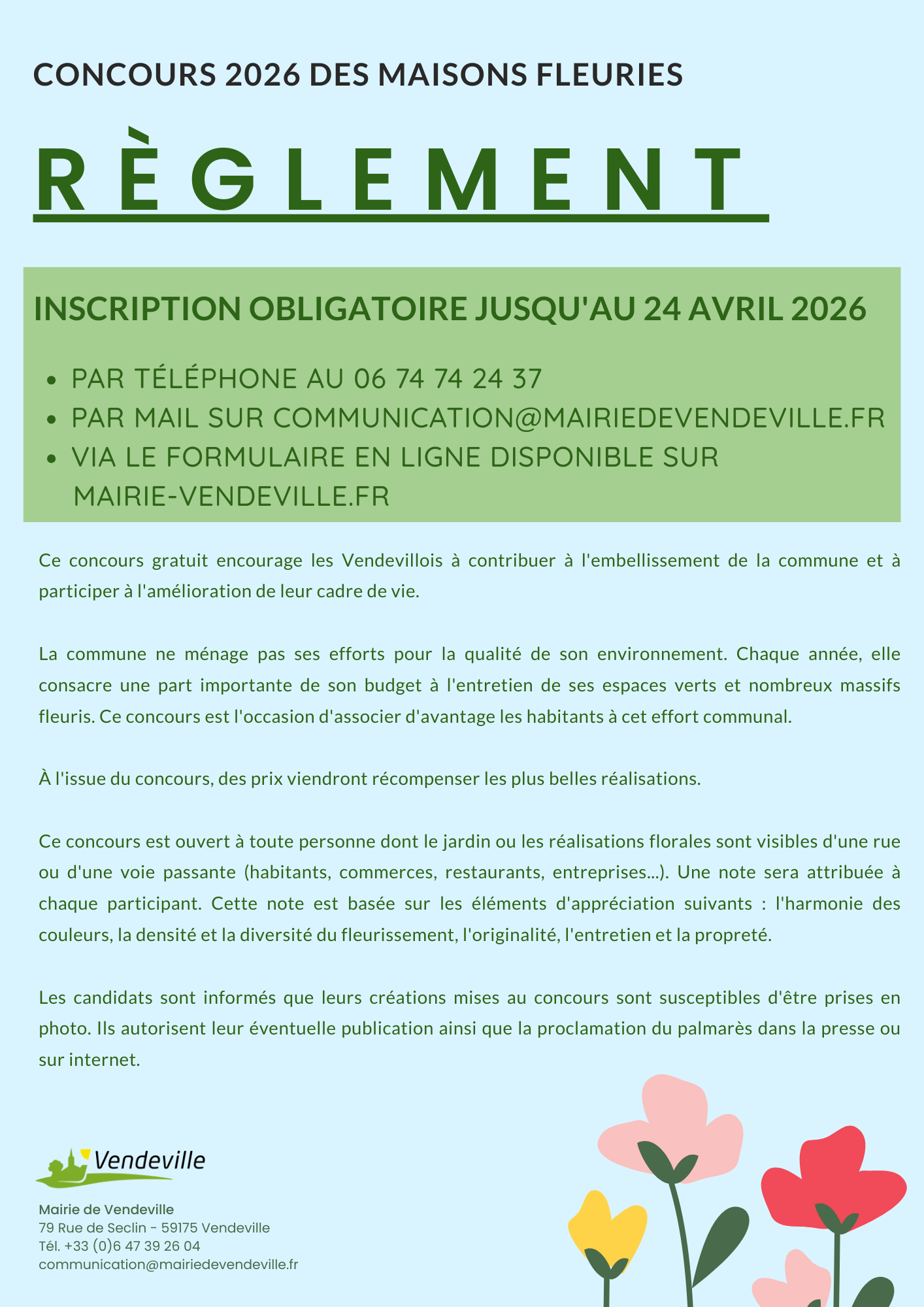 Ce concours gratuit encourage les Vendevillois à contribuer à l’embellissement de la commune et à participer à l’amélioration de leur cadre de vie.