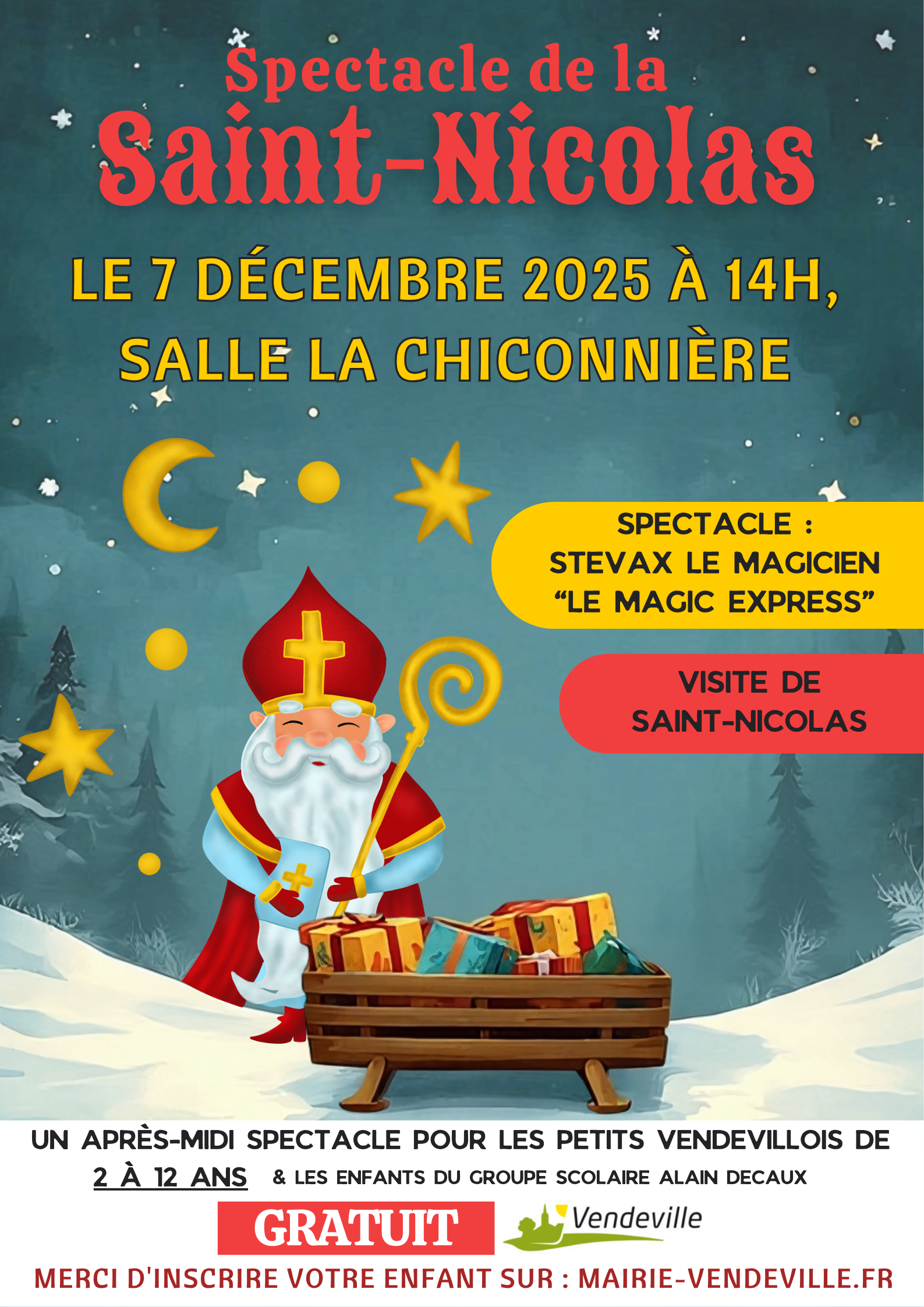 La mairie organise un spectacle de magie pour les petits vendevillois âgés de 2 à 12 ans et les élèves du groupe scolaire Alain Decaux.